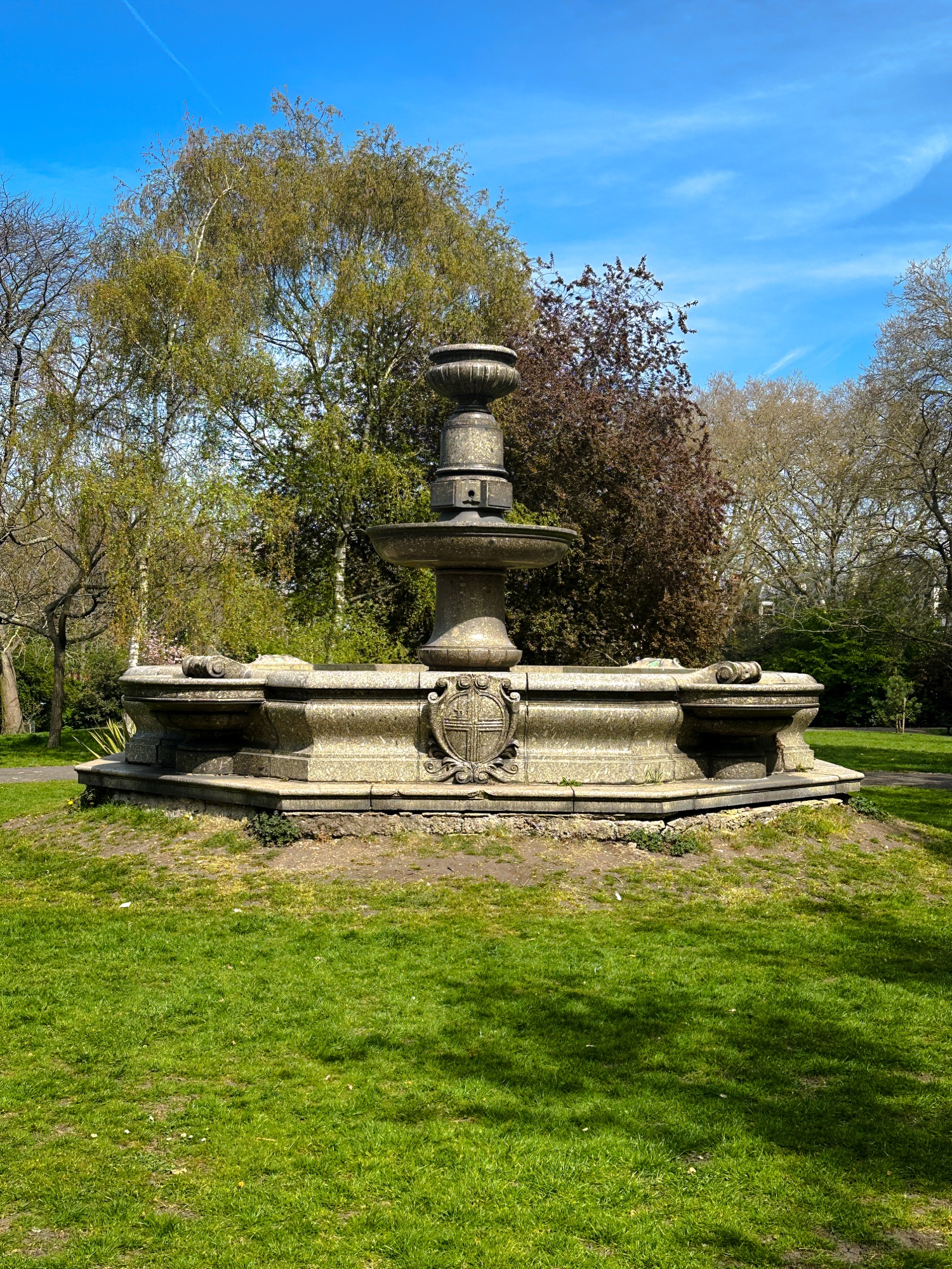 The fountain features the Arms of the City of London and was designed by Francis Cranmer Penrose. Once, it had a central vertical jet of water and four smaller jets spouting into the upper basin. It hasn’t been operational for many years, but its elegant form still gives the park a sense of character and quiet history.