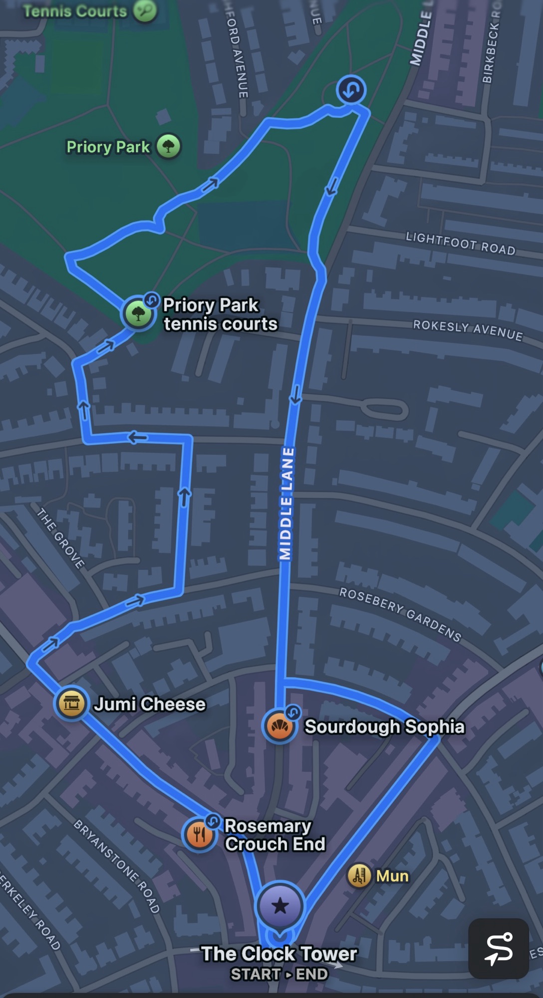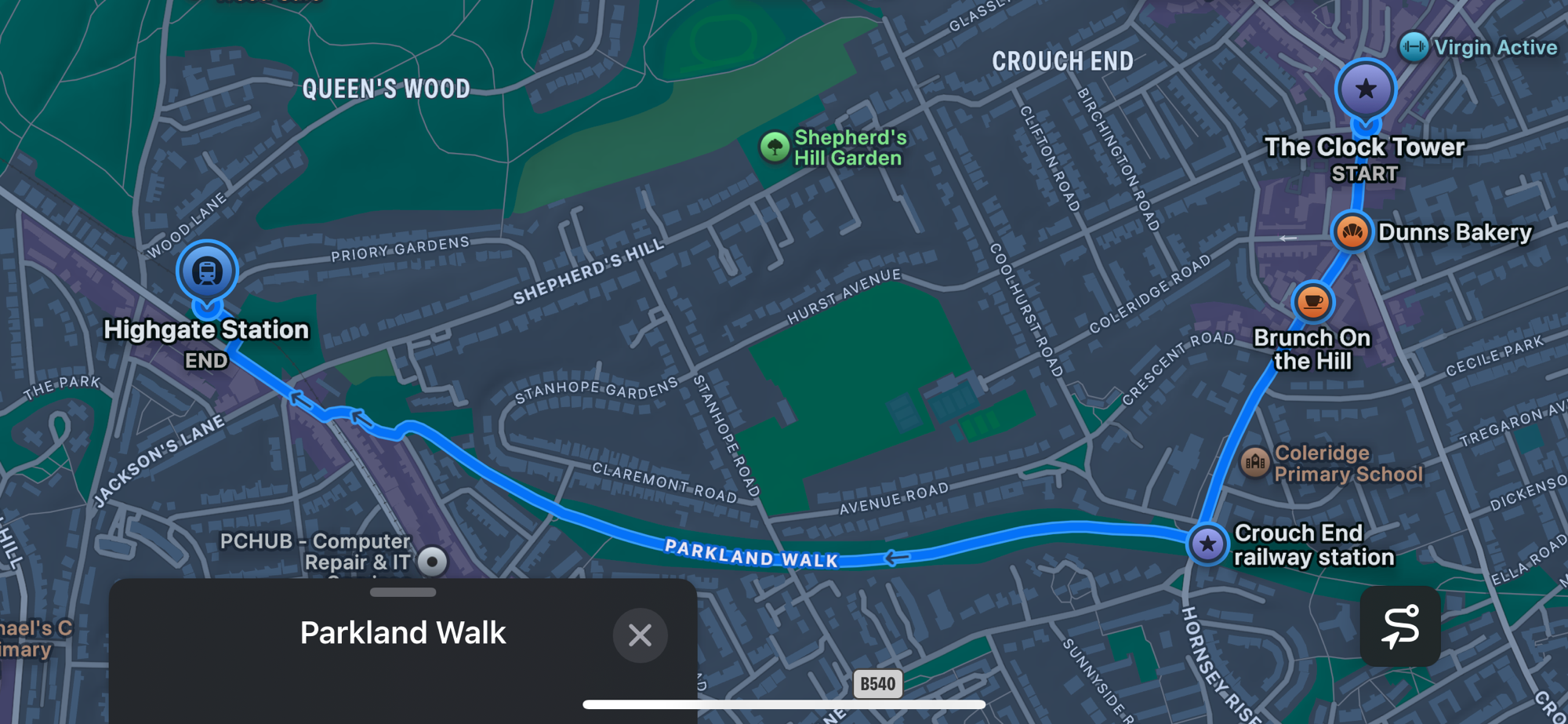 After all that bread, cheese, and tiramisu (no regrets), it’s only fair I recommend a little movement to go with all the indulgence. The good news is, Crouch End is perfect for that. Whether you fancy a quick reset or a longer ramble, there are a couple of easy, beautiful walking routes that let you explore the area properly — from its buzzy cafés and quirky shops to peaceful residential streets and green spaces.