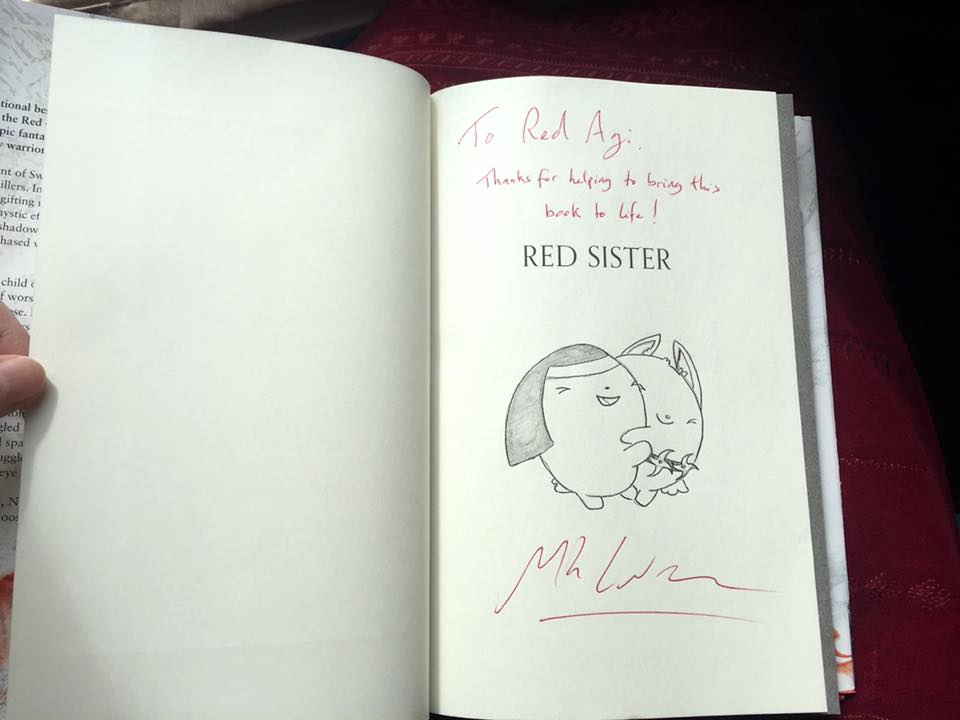 Mark: Well, first off “chief” here is not meant in the “in charge” or “organising” way. For Red Sister, because it was very new for me and I wasn’t hugely confident, I asked a few people to read it once it was finished. They were kind enough to give me some lines or paragraphs of feedback. Agnes’s beta reading is a whole different beast. She reads the books as I write them, often chapter by chapter. She picks up on typos, detailed inconsistencies, wording choices, and the general flow of the story, often making very useful suggestions that can impact future chapters.