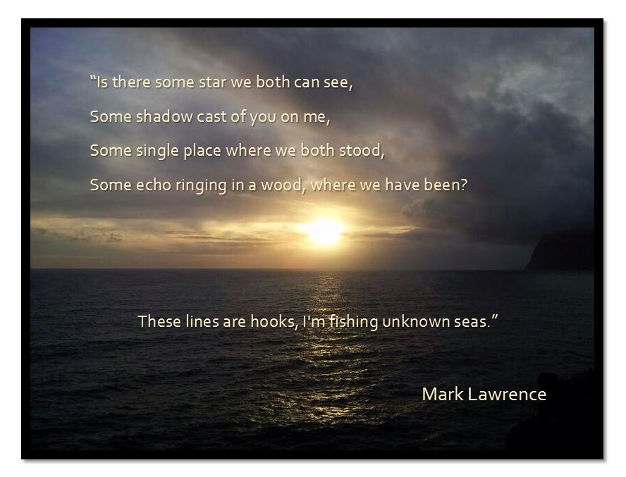 The following evening the world turned on a sigh. The shift rattled through the bones, twisting hearts along a different melody the wind was now humming, twirling all the pieces around into a skeleton of unborn truths. It was the sigh of a prisoner waiting in the shadow of my tomorrows, wishing upon every star. Somewhere, in a far-away land, a key was singing to me, its sweet melody growing more enchanting by my every night.