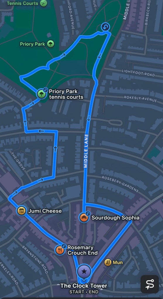After all that bread, cheese, and tiramisu (no regrets), it’s only fair I recommend a little movement to go with all the indulgence. The good news is, Crouch End is perfect for that. Whether you fancy a quick reset or a longer ramble, there are a couple of easy, beautiful walking routes that let you explore the area properly — from its buzzy cafés and quirky shops to peaceful residential streets and green spaces.
